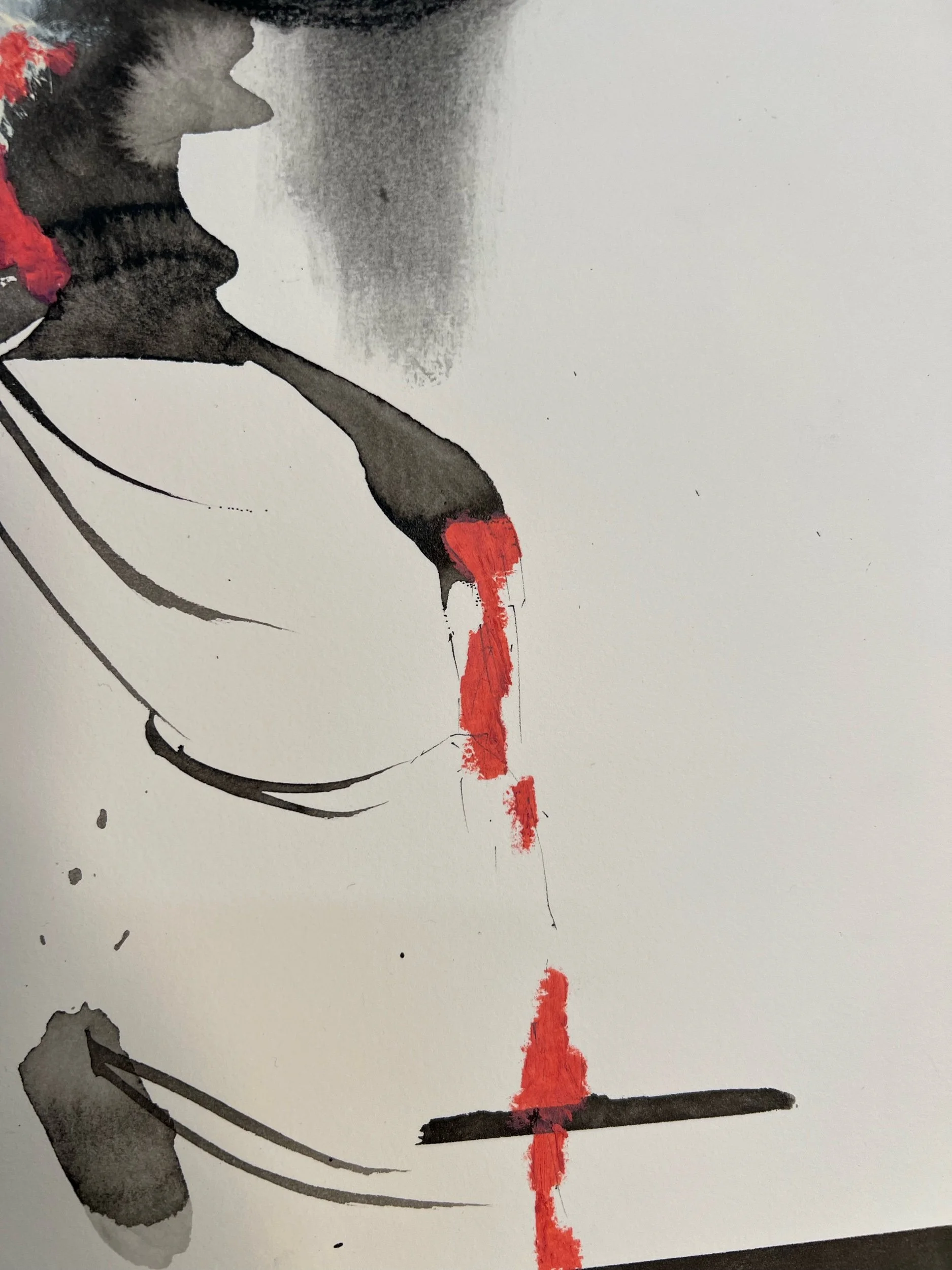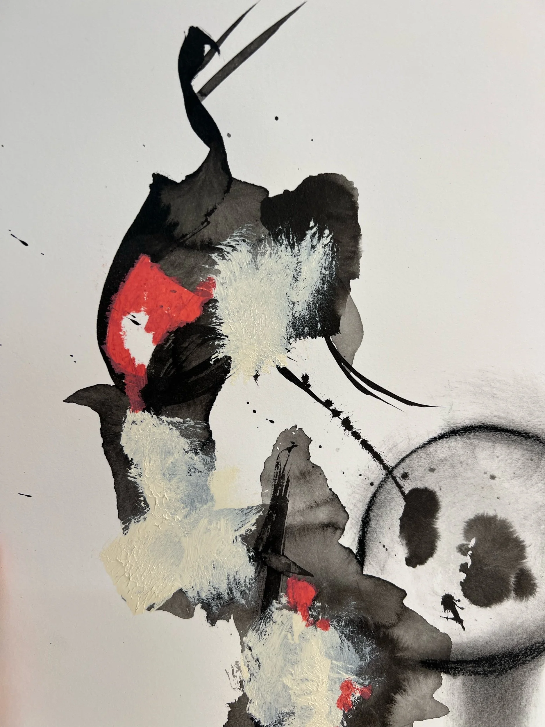Ink, acrylic paint, charcoal, pencil