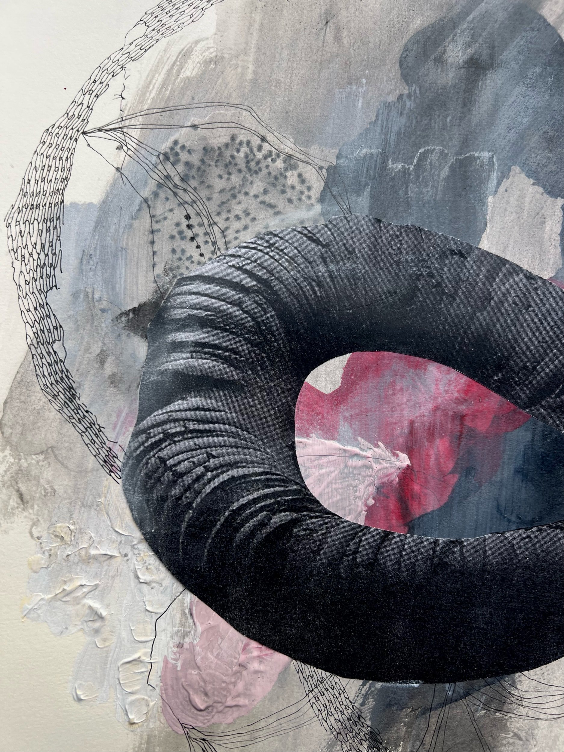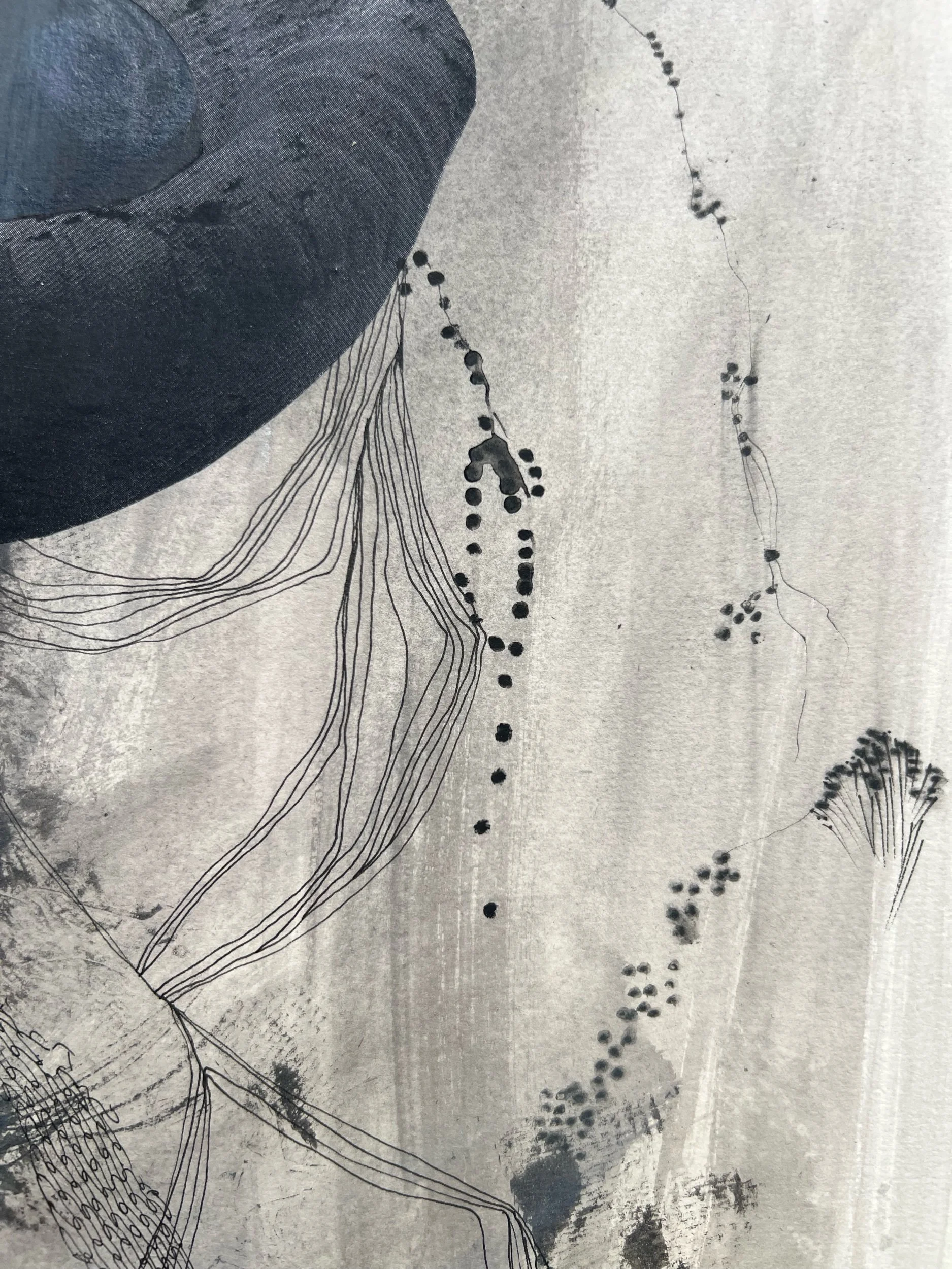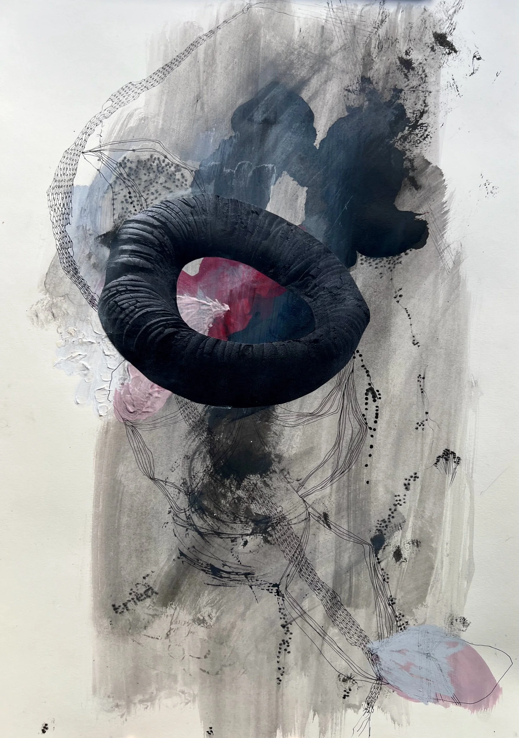 Ink, acrylic paint, charcoal, pencil